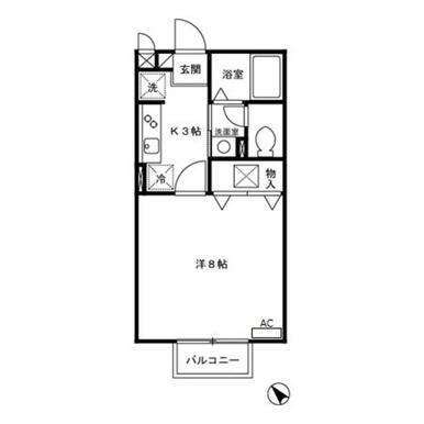 | 間取り | 1K(K3洋室8) | 主要採光面 | 南西 |